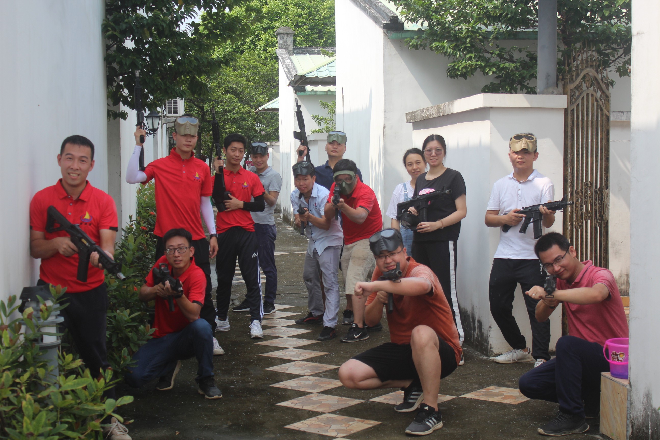 第二天的拓展活動為了一場真人CS對戰,下過雨的場地也依然不能減少同事們對戰的熱情,最終呈現了一場酣暢淋漓的巷戰,一次熱血的對抗。